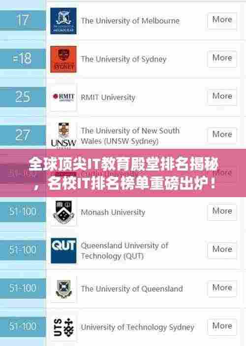 随着信息技术的飞速发展,IT行业在全球范围内持续繁荣,世界名校的IT专业排名成为了众多学子关注的焦点,本文将为您揭示全球顶尖IT教育殿堂的排名及其独特魅力。